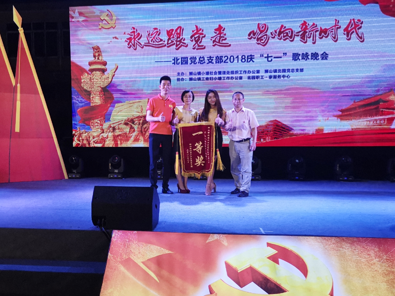 6月29日,由狮山镇小塘社会管理处组织办公室、狮山镇北园党总支部联合组织举办的主题为“永远跟着党走,唱响新时代”北园党总支部2018庆“七一”歌咏比赛在北区商业广场隆重上演。我司在我司党支部书记戴命夫的带领下,我司优秀党员骆静、林海金、宋雨默积极参与此次活动,并凭借着精彩的表演《我是佛高区幸福的一员》,在激烈的竞争中脱颖而出,荣获朗诵一等奖。