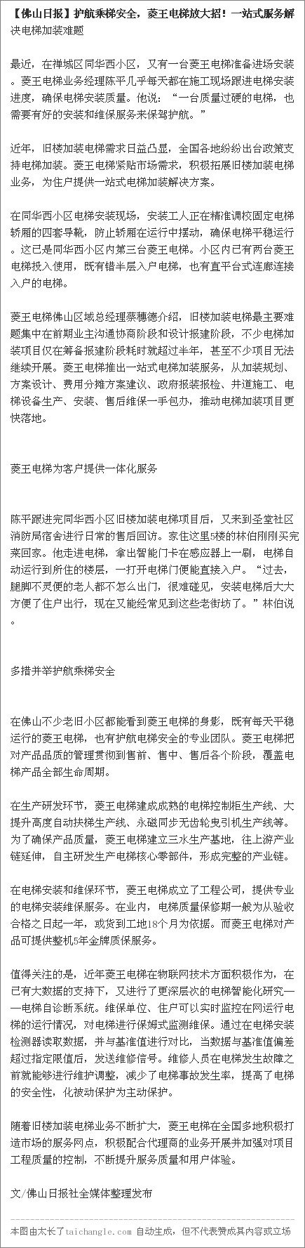 【佛山日报】护航乘梯安全,菱王电梯放大招!