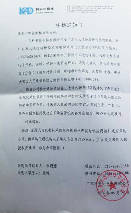 【公司实力展示】中标通知书